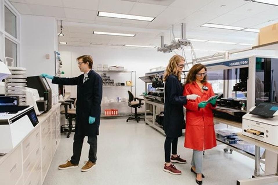 The first step of the process is genetic sequencing and design, carried out by the same sorts of scientific tools one would find in a university lab.